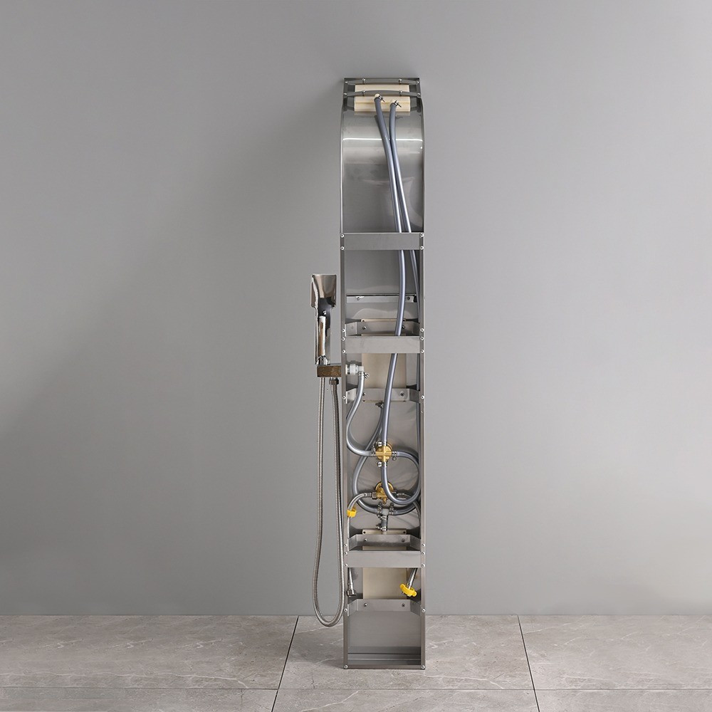 A kerámiabetétes csaptelep gondoskodik a víz hőmérsékletének és áramlásának precíz szabályozásáról. A 4 funkciós krómozott váltószelep lehetővé teszi a különböző vízbeállítások közötti könnyű váltást, így személyre szabhatja a zuhanyzóélményt. Emellett a mechanikus keverő csaptelep lehetővé teszi a víz hőmérsékletének pontos beállítását a kívánt szintre. A zuhanypanelen 4 integrált masszázsfúvóka található, amelyek további relaxációt és élvezetet nyújtanak. Ezek a masszázsfúvókák finom vízsugarakkal stimulálják a testet, segítve a feszültség és a stressz oldását. A krómozott kézi zuhannyal pedig könnyedén irányíthatja a vízsugarat és célozhatja az adott területet.