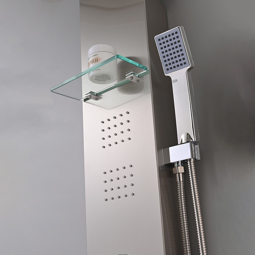 Méret: 150 X 19 cm, rozsdamentes acél test, kerámiabetétes csaptelep, 4 funkciós króm váltószelep, mechanikus keverő csapteleppel, nagyméretű trópusi esőzuhany, zuhatag masszázs, 4 db integrált masszázsfúvóka, elegáns kézi zuhanyfej, praktikus tároló polc, rozsdamentes gégecső (1,5 m).