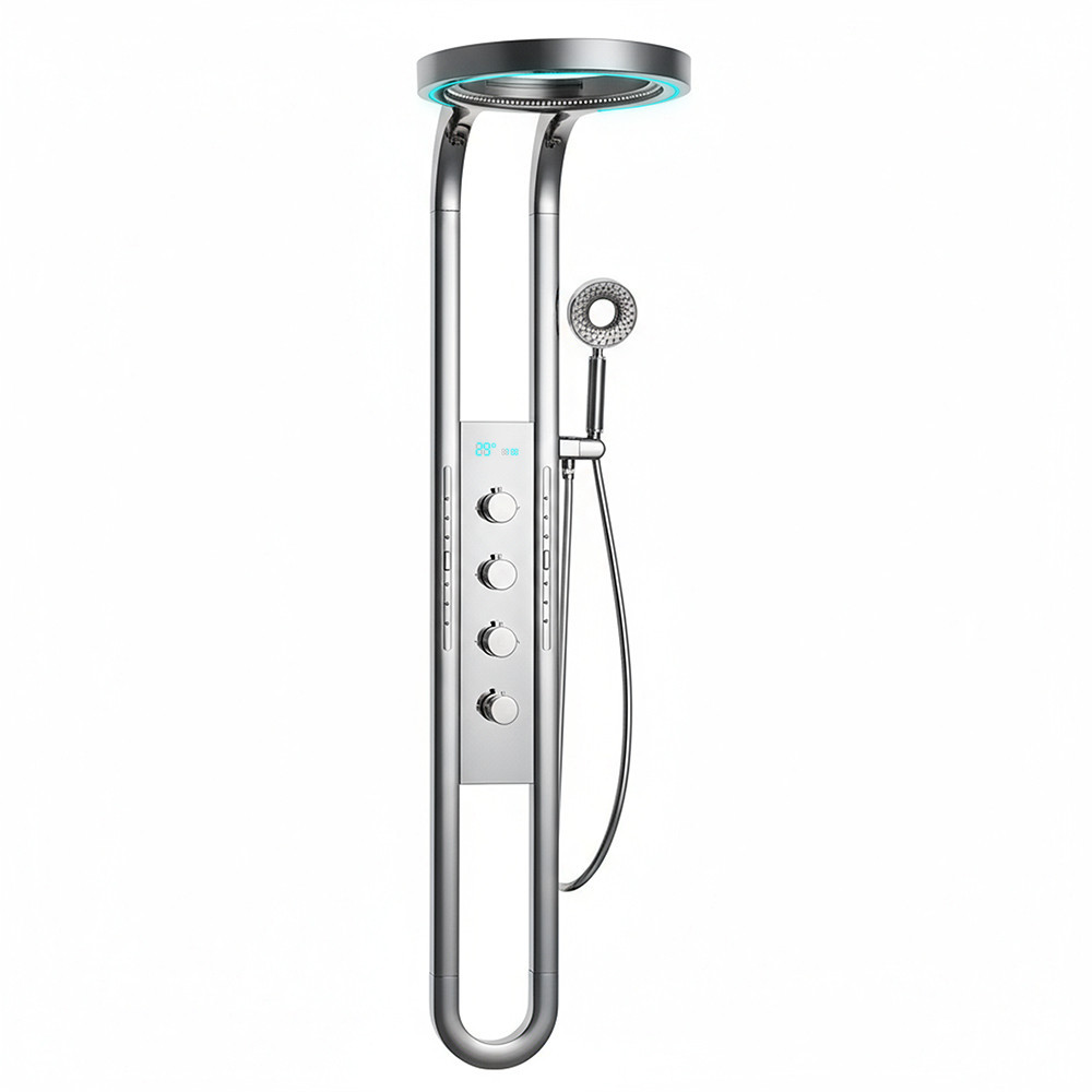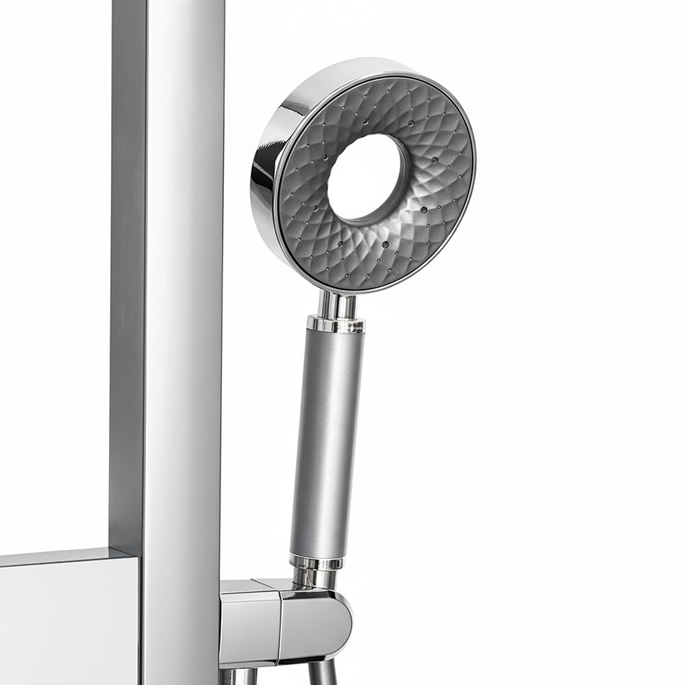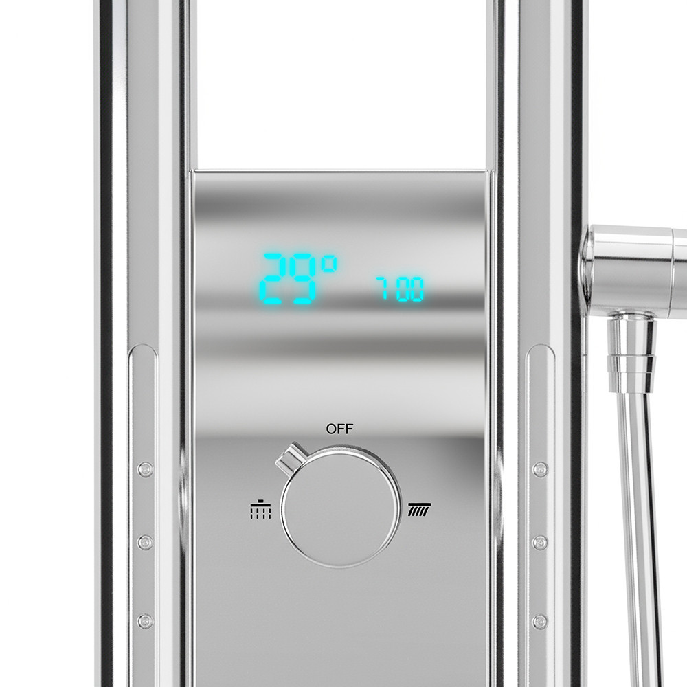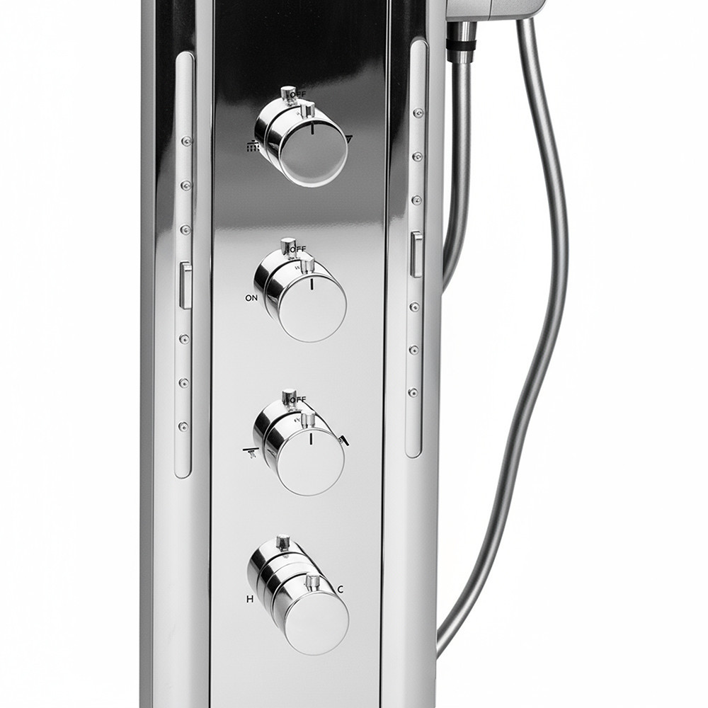 A zuhanypanel rozsdamentes acélból készült, amely garantálja a hosszú élettartamot és a prémium megjelenést. A króm szín modern eleganciát sugároz, amely bármely fürdőszobai környezethez illeszkedik.