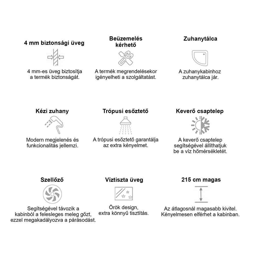 Aria hidromasszázs zuhanykabin balos beépítési oldallal