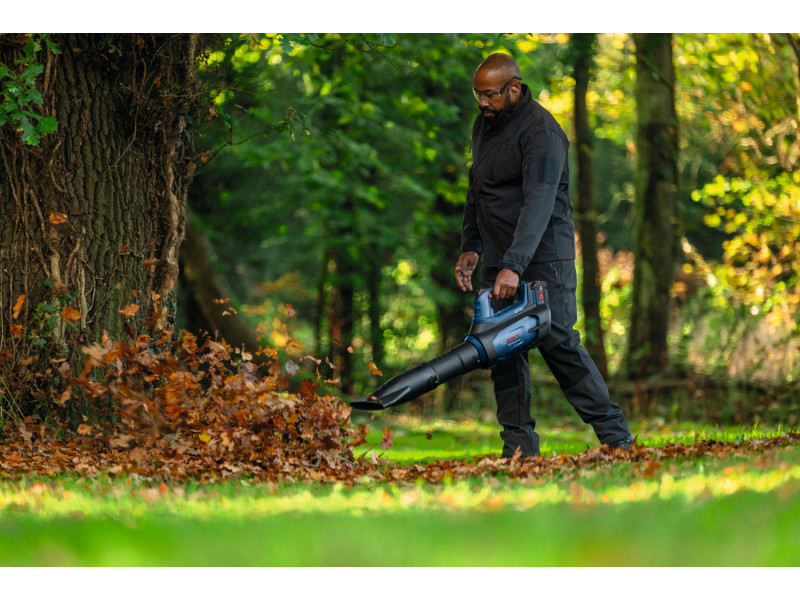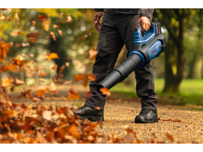 • A lomb és más kerti hulladék eltávolítása a gyepről, járdáról, autóbeállókról és más kültéri felületekről hosszabb időt és nagyobb erőfeszítést igényelhet. A Bosch GBL 18V-800 axiális lombfúvó rendelkezik a gyors hulladékeltakarításhoz szükséges nagy teljesítménnyel. Nagy teljesítményű, szénkefe nélküli motor és axiális ventilátor biztosít 800 m3/h térfogatáramot akár 200 km/h sebességgel – tökéletes a nagytakarításhoz. A fordulatszám-állítással kiválasztható az adott feladathoz szükséges teljesítmény, zajszint és üzemidő. A reteszelőgomb aktiválásával az indítógombot sem kell nyomva tartani, így kényelmesebb a munkavégzés.