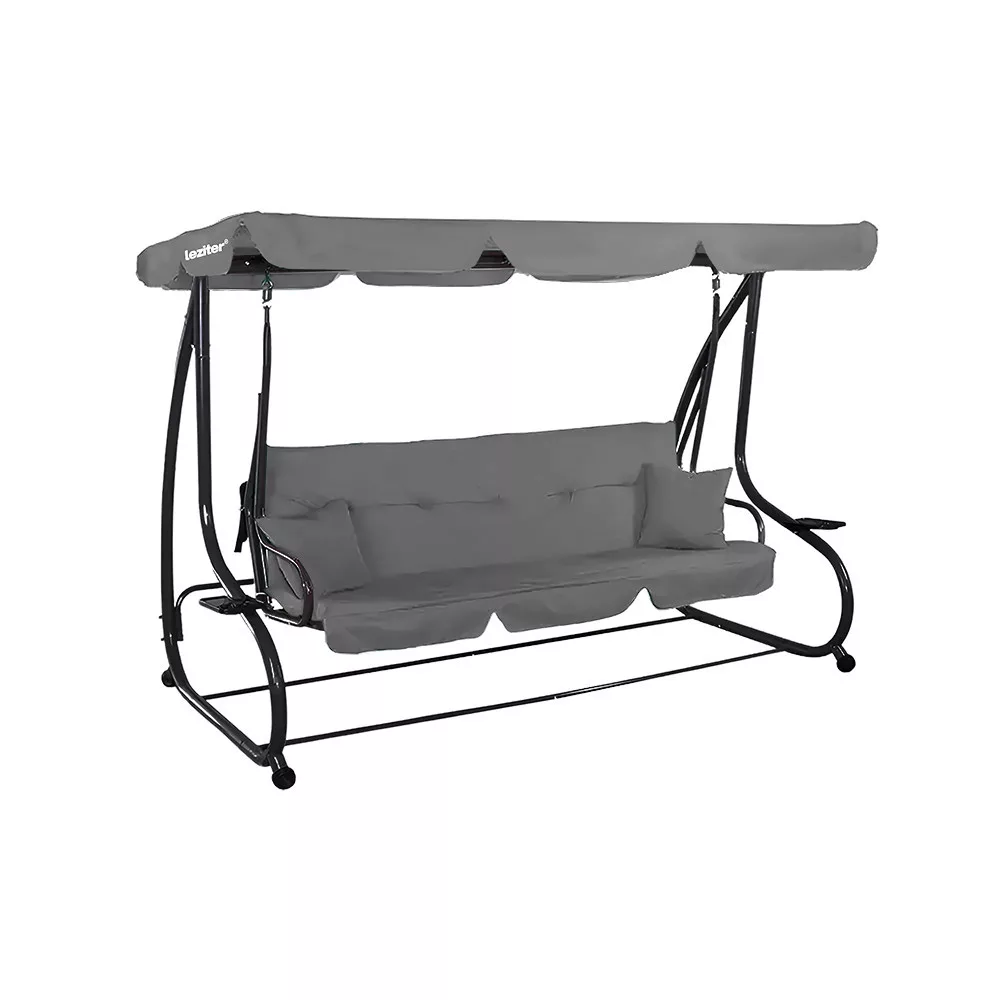 Ez a prémium minőségű, háromszemélyes hintaágy ideális választás minden kertbe vagy teraszra! 200x110x165 cm-es mérete bőséges helyet biztosít akár három ember számára, miközben stabil kialakításának köszönhetően masszív és biztonságos.