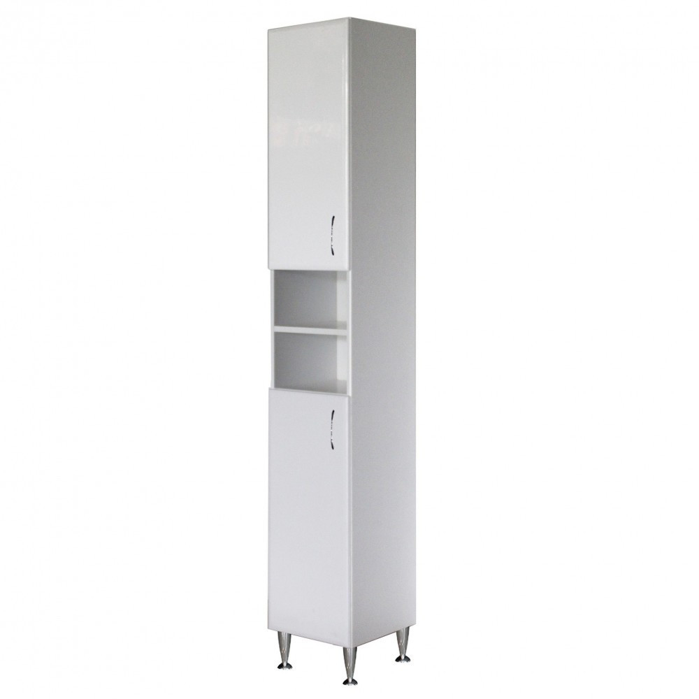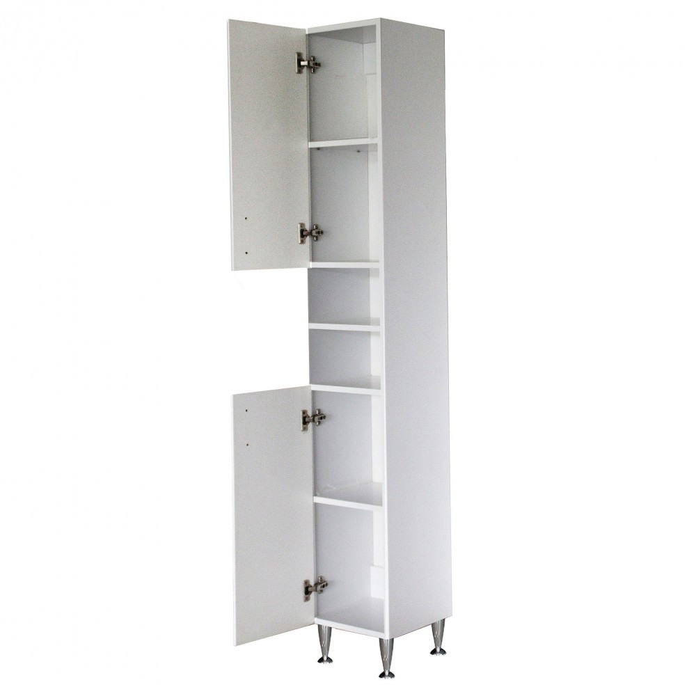 Bianca Plus 30 magas szekrény 2 ajtóval, nyitott, magasfényű fehér színben, univerzális