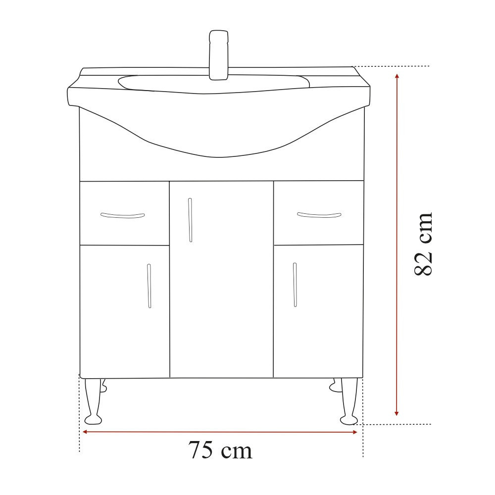 • Alsó rész mosdó nélkül : 80x72x33 cm (mosdóval : 82x75x48 cm )