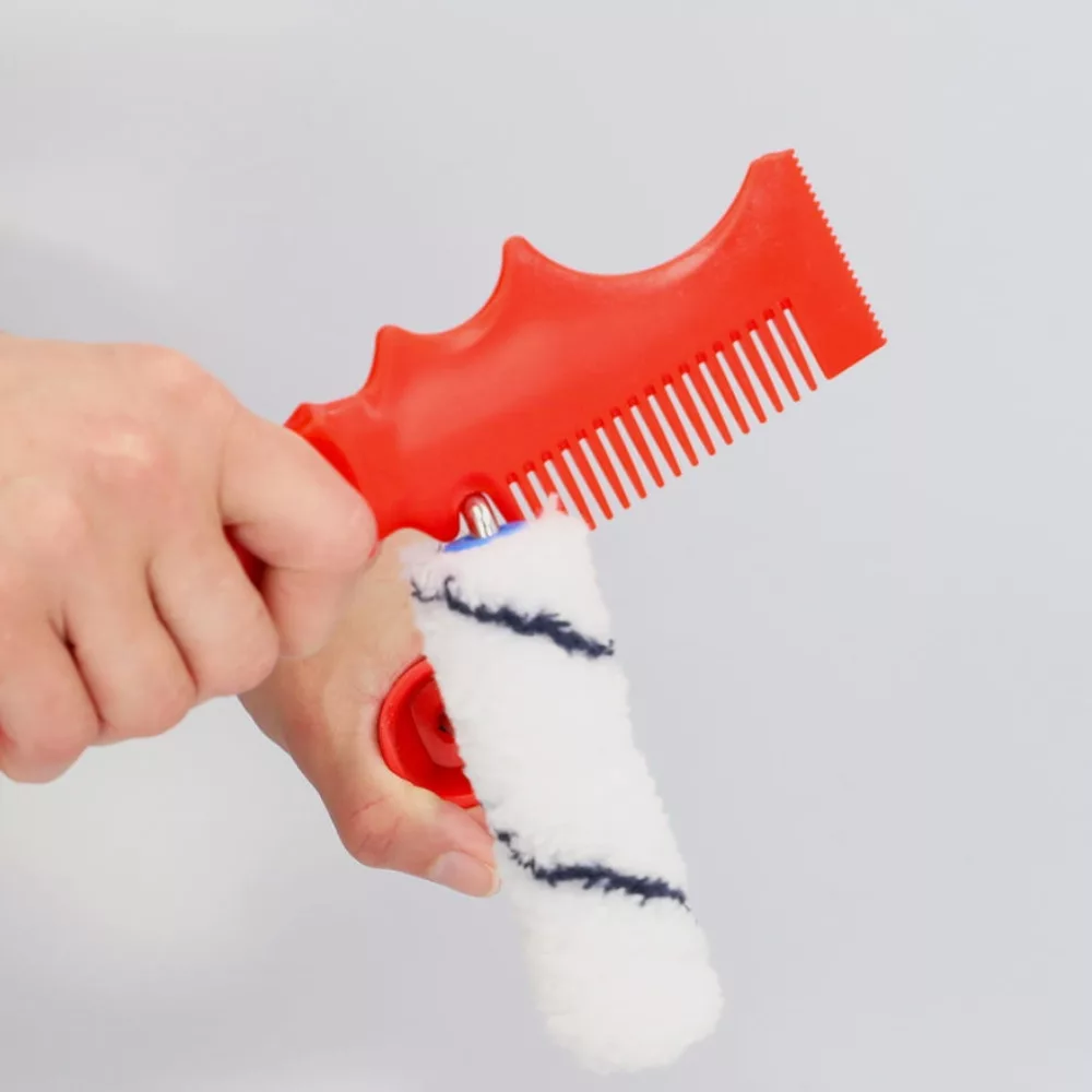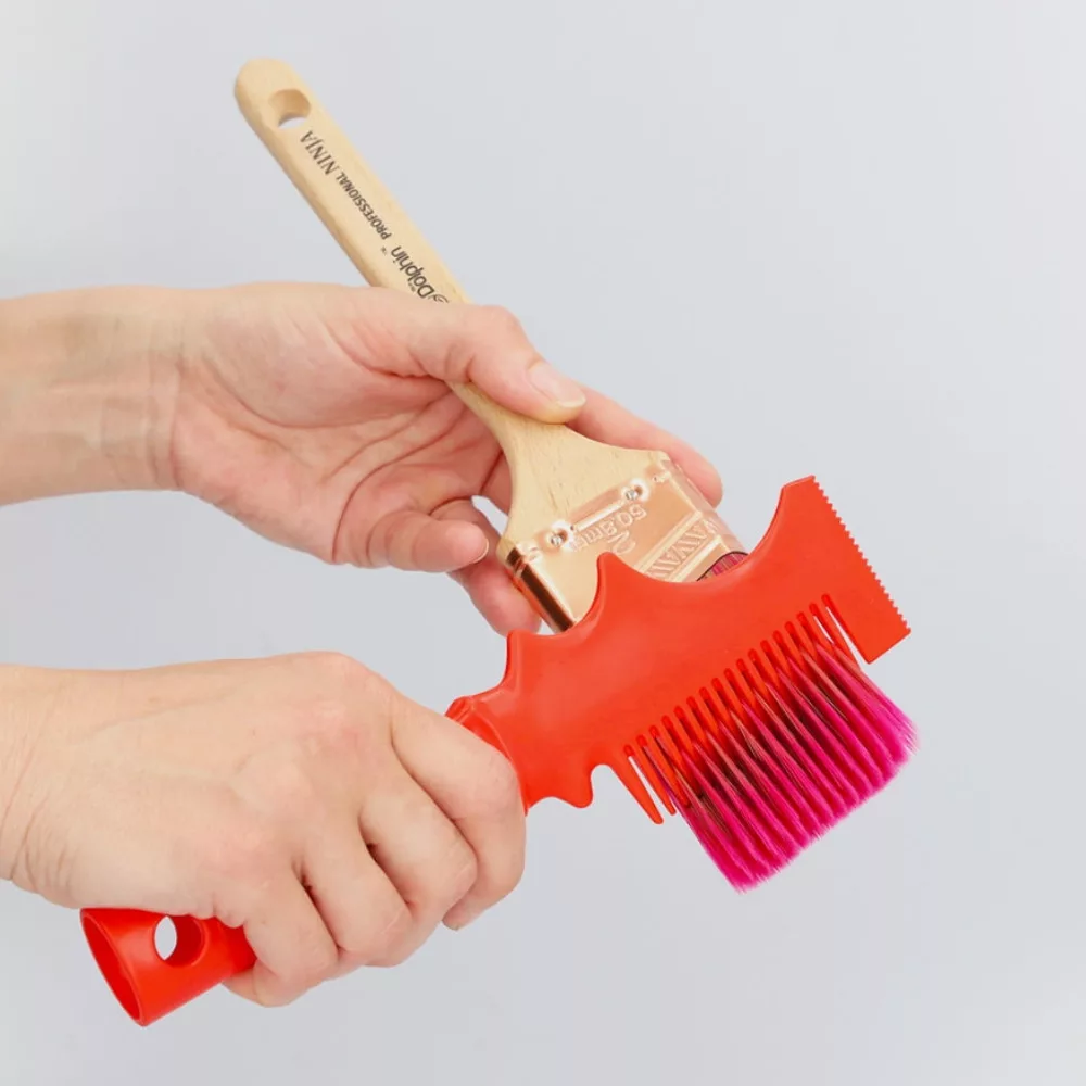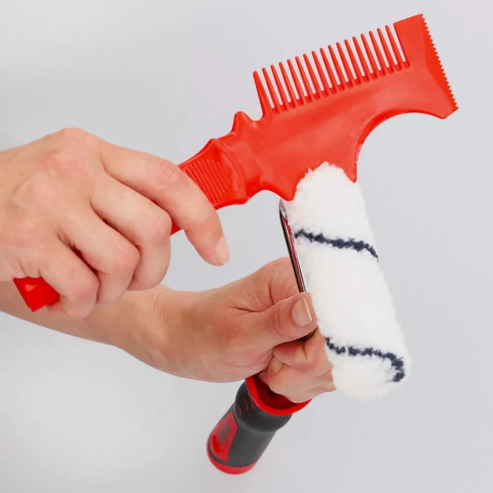 A félköríves fej fésűs kialakítása ideális az ecset sörtéinek tisztítására, míg a mélyített rész hatékonyan távolítja el a festéket a hengerről. Tartós, szennyeződésálló műanyagból készült, ergonomikus fogantyúval ellátva a kényelmes használat érdekében.