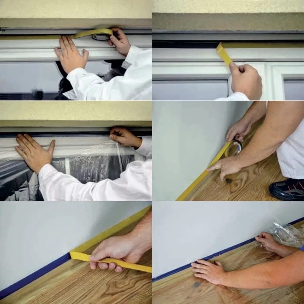 Festési és felújítási munkák során felületek védelmére és fóliák rögzítésére.
