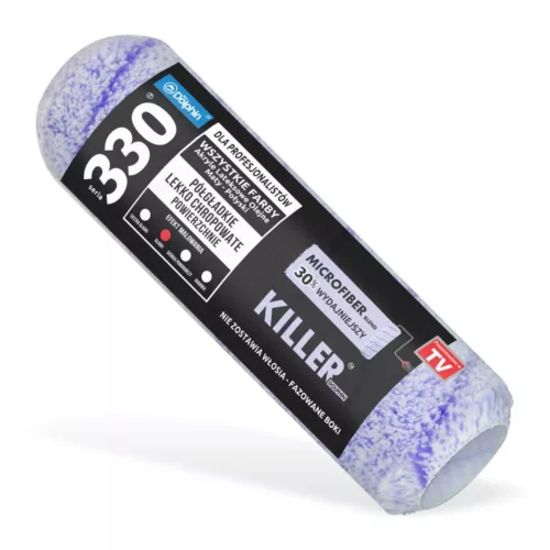 A Blue Dolphin Killer festőhenger a 330-as sorozatból egy kiváló minőségű festőeszköz, amely innovatív mikroszálas anyagból (MICROFIBER BLEND) készült. Ez az anyag kiválóan felszívja és visszaadja a festéket, miközben nem hagy szálakat a felületen. A festőhenger egyszerű rögzítési rendszerrel rendelkezik, és többszöri használat után is megőrzi eredeti puhaságát. A hengeren található ferde végek kiküszöbölik a festék rétegződését a széleken, ezáltal egyenletesebb festési eredményt biztosítanak.
