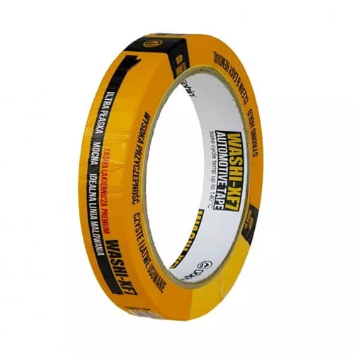 A Blue Dolphin Premium WASHI XF7 egy professzionális minőségű, hőálló festő-maszkolószalag, amelyet kifejezetten autófestési és autókozmetikai munkákhoz fejlesztettek ki. Ultra-vékony washi (rizspapír) hordozója rendkívül pontos, éles festési éleket biztosít, miközben ellenáll akár 140 °C-os hőterhelésnek is. Oldószerálló, nem engedi aláfolyni a festéket, és megfelelő körülmények között akár 60 nap után is maradéktalanul eltávolítható, nyom nélkül.