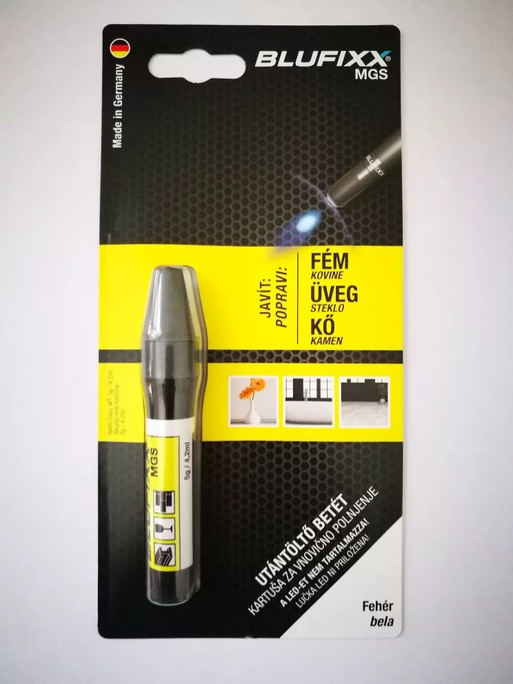 Blufixx MGS fényre megkeményedő javító fehér gél patron 5g - fém,üveg és kő anyagokhoz