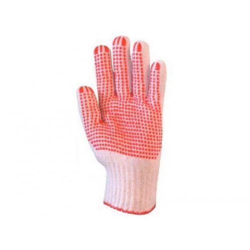 • kötött, négy szálas poliészter/pamut cérna • csúszás elleni pöttyök mind a két oldalon • két oldalon használható, hosszabb élettartam • gumírozott mandzsetta • SÚLY: 70 g • CSOMAGOLÁS: 240/12 • EU szabvány: EN420, 1. kat