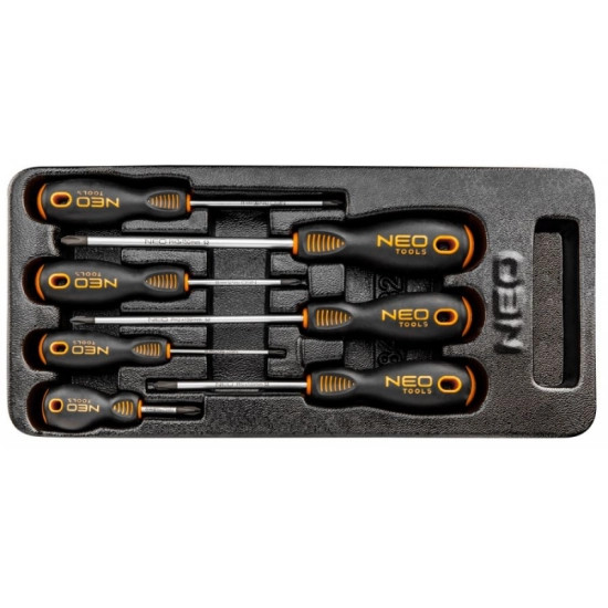 NEO PH kereszt csavarhúzó a csavarhúzók csúcsa kivételesen erős S2 acél ötvözetből készülnek. A csúcsok munkafeje hőmegmunkálva, melynek köszönhetően keménysége és hajlítószilárdsága 56 HRC. A csavarhúzók mágneses, szilárdított fejjel rendelkeznek. A profilozott hüvelykujj támasztós, háromszöges kialakítású markolat csökkenti a kéze megterhelését a munka közben és megkönnyíti az optimális nyomaték elérését. A kétanyagú markolat megakadályozza a kicsúszást és ellenáll a vegyszerek, olajok és zsírok hatásának. A szerszámok praktikus, a NEO 84-221 és 84-222 szerszámos szekrények fiókjaiba illő műanyag bőröndben leszállítva. A szerszám minőségét a TÜV tanúsítvány és a gyártó 25 éves garancia igazolja. A NEO márka a professzionális igényeket is kielégíti.