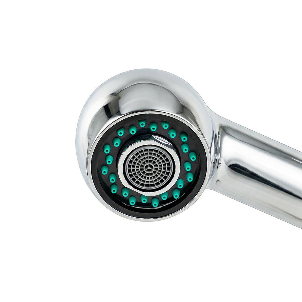 A kihúzható, kétfunkciós zuhanyfej lehetővé teszi, hogy egyszerűen válthass a normál és a zuhanysugaras vízáram között.