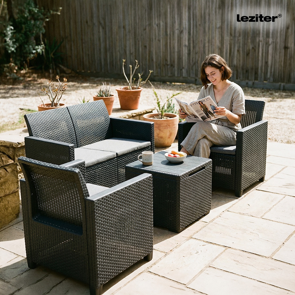 Időtálló bútor: A Grafit színű, stílusos párnákkal rendelkező kerti bútor szett könnyű, egyben tartós vázszerkezettel rendelkezik. Időjárásálló anyagai lehetővé teszik, hogy sok éven át a terasz, vagy az erkély kényelmes darabja maradjon.