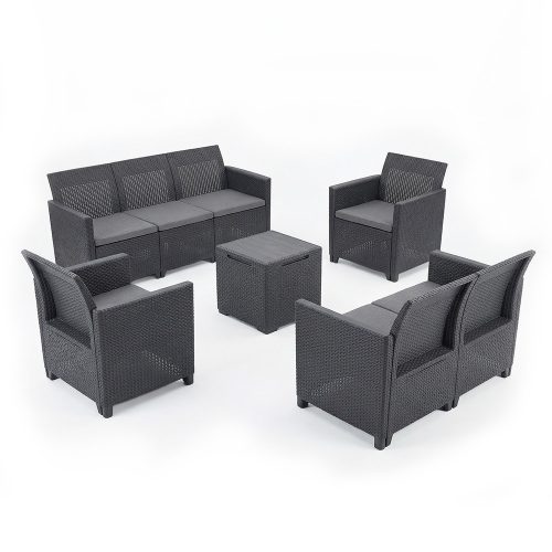 Claire V 7 személyes kerti bútor garnitúra vigo tárolós asztallal grafit színben