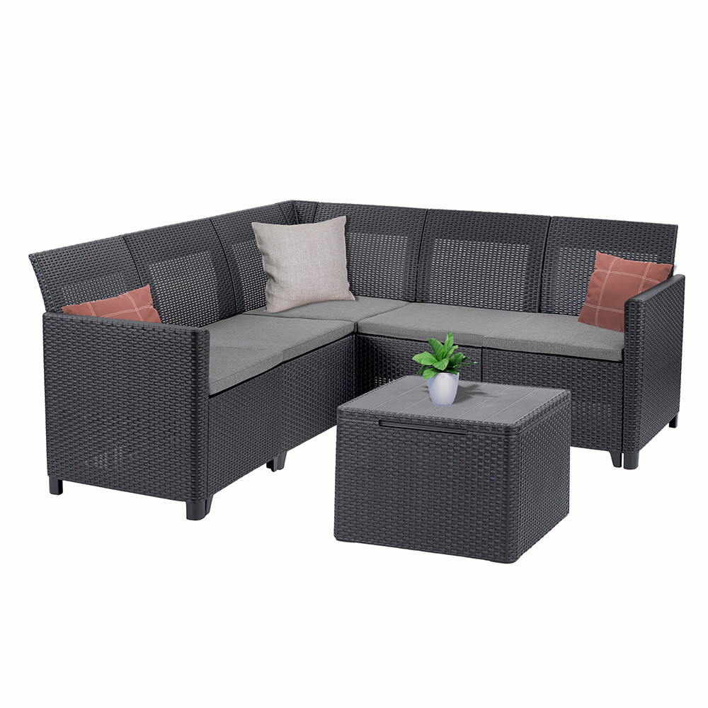 Claire VII 5 személyes sarokgarnitúra párnatartós asztallal grafit