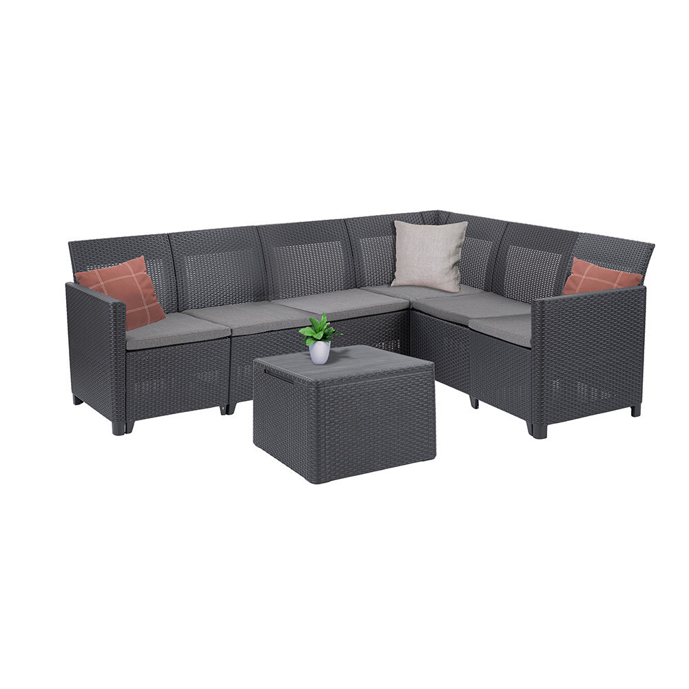 Claire VII 6 személyes sarokgarnitúra párnatartós asztallal grafit