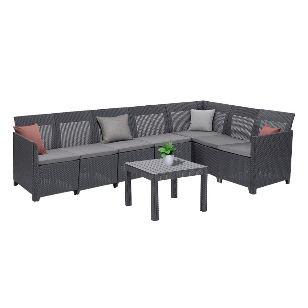 A Keter Claire XI 7 személyes sarokgarnitúra Orlando asztallal variálható, bővíthető bútorcsalád szerszám nélkül összeszerelhető, és teljes szabadságot ad, hogy saját ízlésed és helyigényed szerint alakítsd ki a kültéri nappalidat.