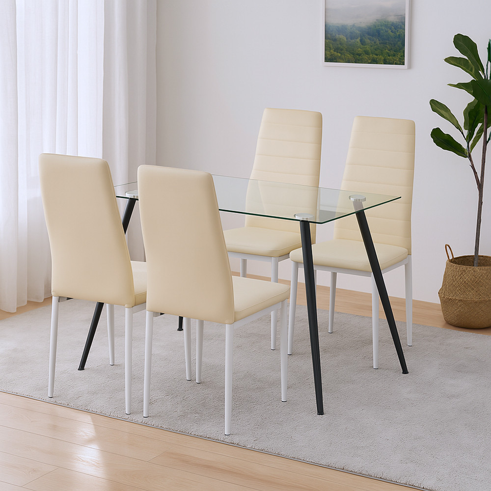 Cruz 4+1 étkezőgarnitúra – Teljes bézs elegancia edzett üvegasztallal és modern étkezőszékekkel
