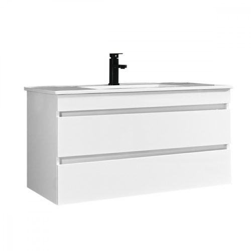 Cube 100 alsó fürdőszobabútor kerámia mosdóval 2 fiókos, magasfényű festett fehér