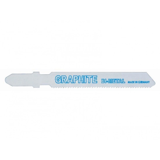 GRAPHITE szúrófűrész pengék fa és műanyag közepesen pontos vágásához. A T befogás alkalmazhatóvá teszi a pengét az összes Bosch típusú vagy univerzális befogással szerelt szúrófűrészben. A CrV (króm-vanádium) acél a pengéknek nagy rugalmasságot és hőmérséklet-állóságot kölcsönöz. A penge csiszolt oldalfelületei csökkentik a súrlódást és a penge felmelegedését fűrészelés közben.