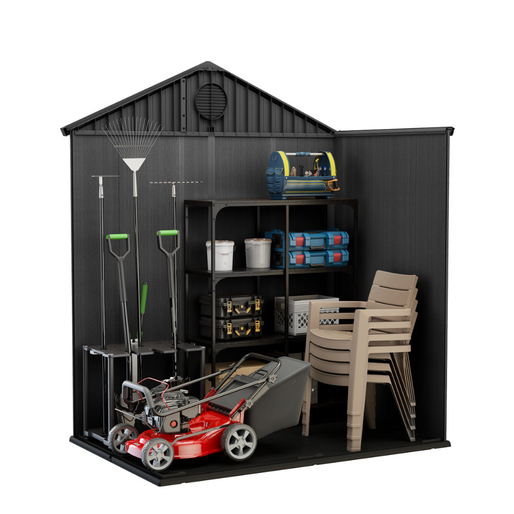 A Darwin műanyag kerti ház kiválóan ellenáll az időjárás viszontagságainak, beleértve az erős UV-sugárzást és az esős időjárást. A padlólemez hatékonyan védi a házban tárolt tárgyakat a nedvességtől és a szennyeződésektől, így azok mindig szárazak és tiszták maradnak. Emellett a műanyag felület könnyen tisztán tartható, ami minimális karbantartást igényel.