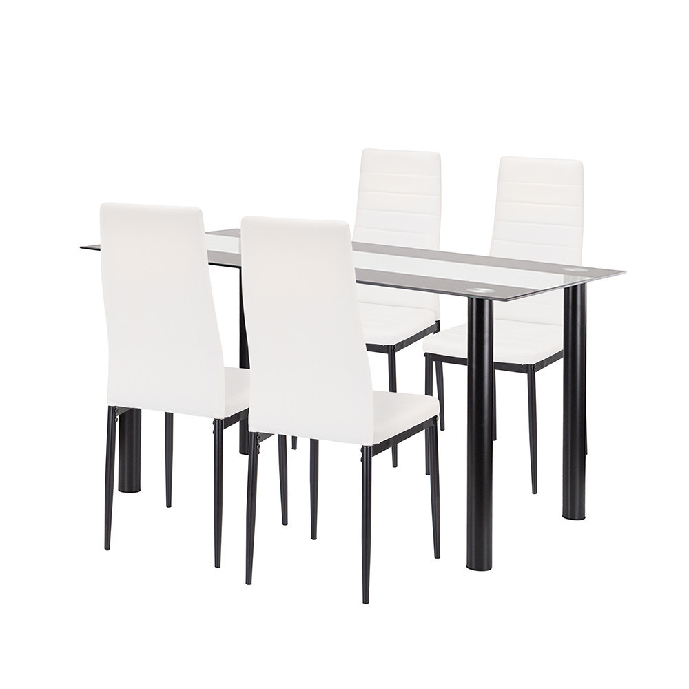 Denton 4+1 étkezőgarnitúra – Modern fehér-fekete stílus nagyobb asztallal és kényelmes székekkel