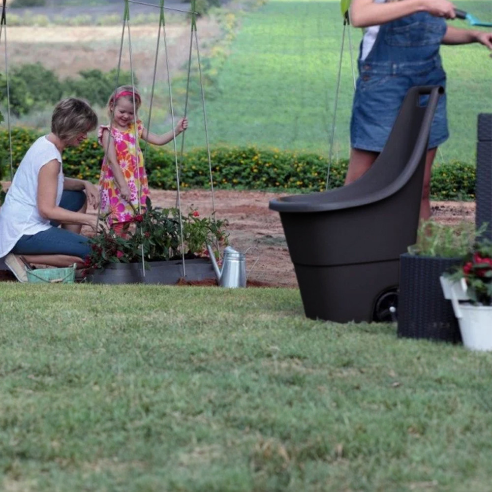 Az Easy Go Breeze műanyag kerti talicskát, amely egy 50 literes kapacitással rendelkező új generációs eszköz, tökéletes választás mindenféle kerti és háztartási feladathoz. fekete színe miatt nem csak praktikus, hanem stílusos is. Tökéletes segítőtárs a kertben végzett munkákhoz, otthoni használatra, bevásárlásokhoz, mosásnál vagy akár a tisztítószerek cipelésére.