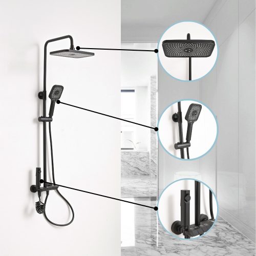 Az Eliz multifunkciós zuhanyszett a Leziter prémium kategóriájú modellje, amely a design, a funkcionalitás és a kényelem tökéletes egyensúlyát kínálja. A modern fekete árnyalat és a letisztult formák elegáns megjelenést kölcsönöznek bármilyen fürdőszobának, miközben a sokoldalú funkciók gondoskodnak a személyre szabott zuhanyélményről.