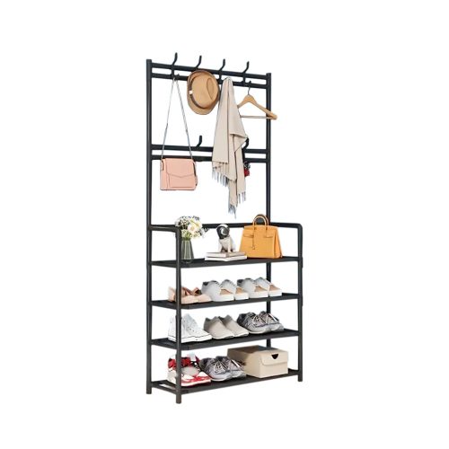 • Sokoldalú felhasználhatóság: Az állvány nemcsak ruhák és cipők tárolására alkalmas, hanem kalapok, táskák, sálak és egyéb kiegészítők rendszerezésére is.