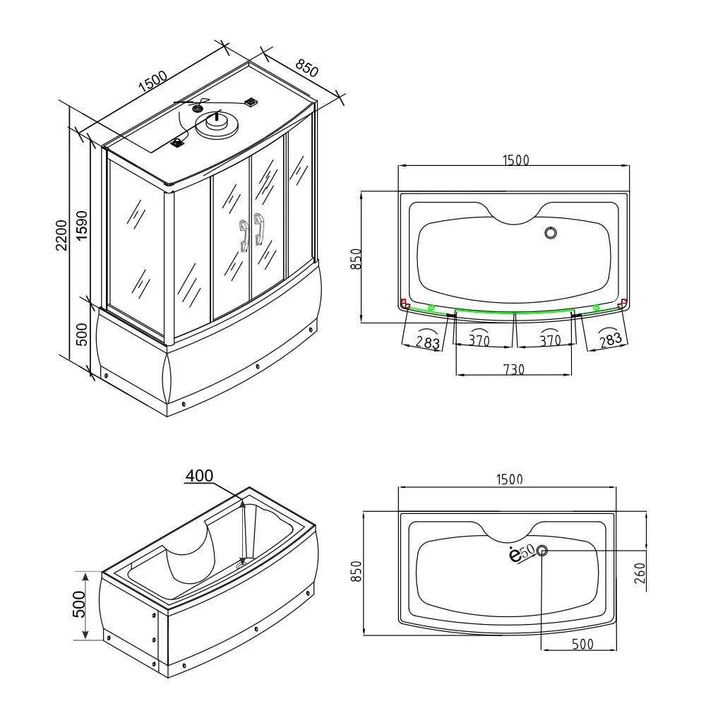 Emilia 150 Hidromasszázs Kádkabin elektronikával Black
