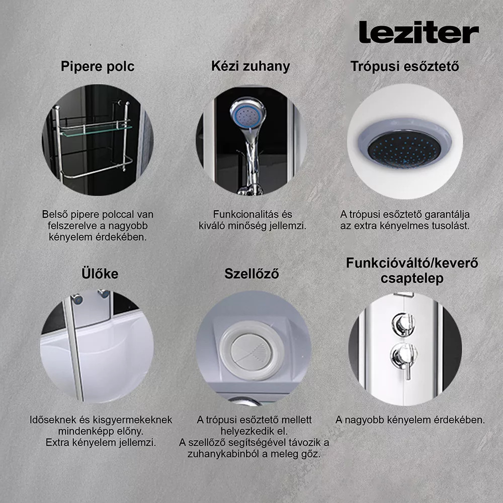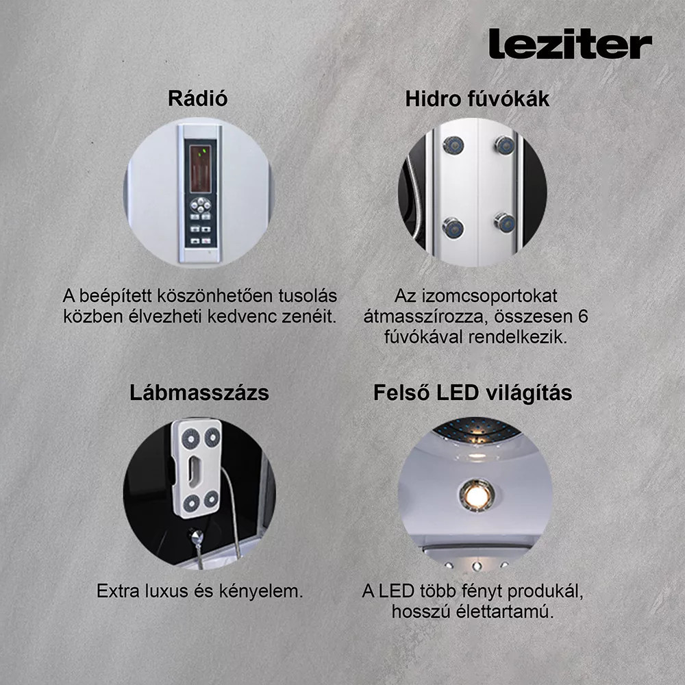 Leziter HTSR-150B Emilia 150 hidromasszázs kádkabin elektronikával balack telepítés padlóra