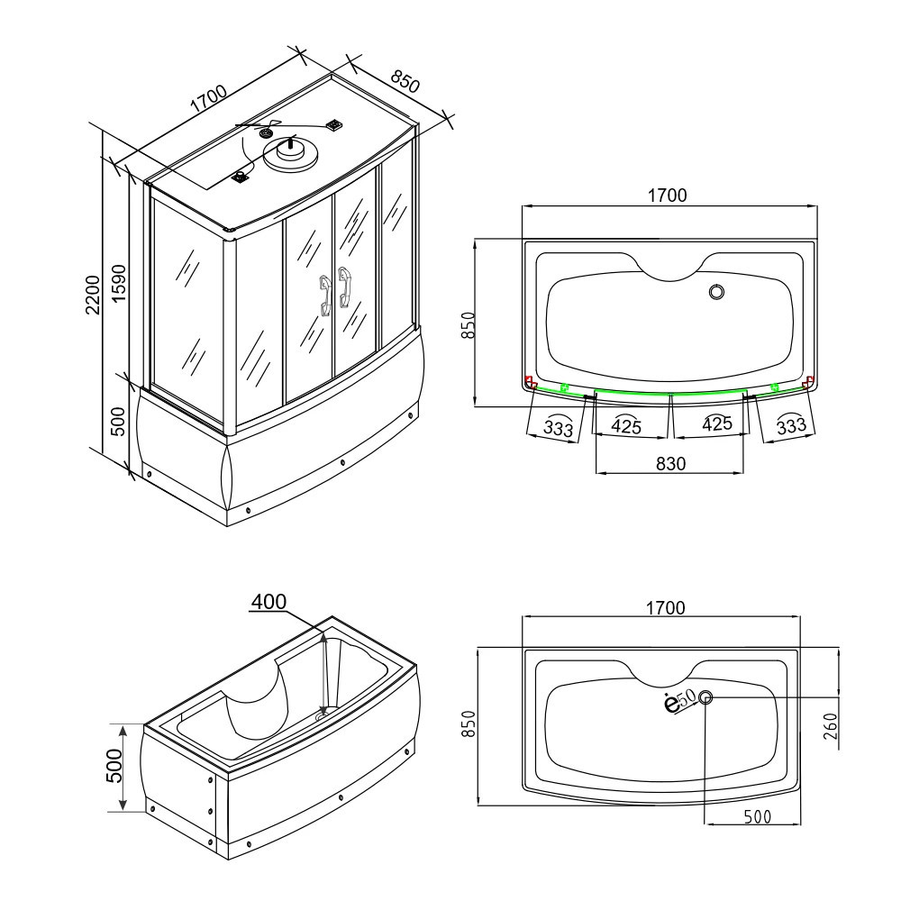 Leziter HTSR-170B Emilia 170 hidromasszázs kádkabin elektornikával black szerelési útmutató