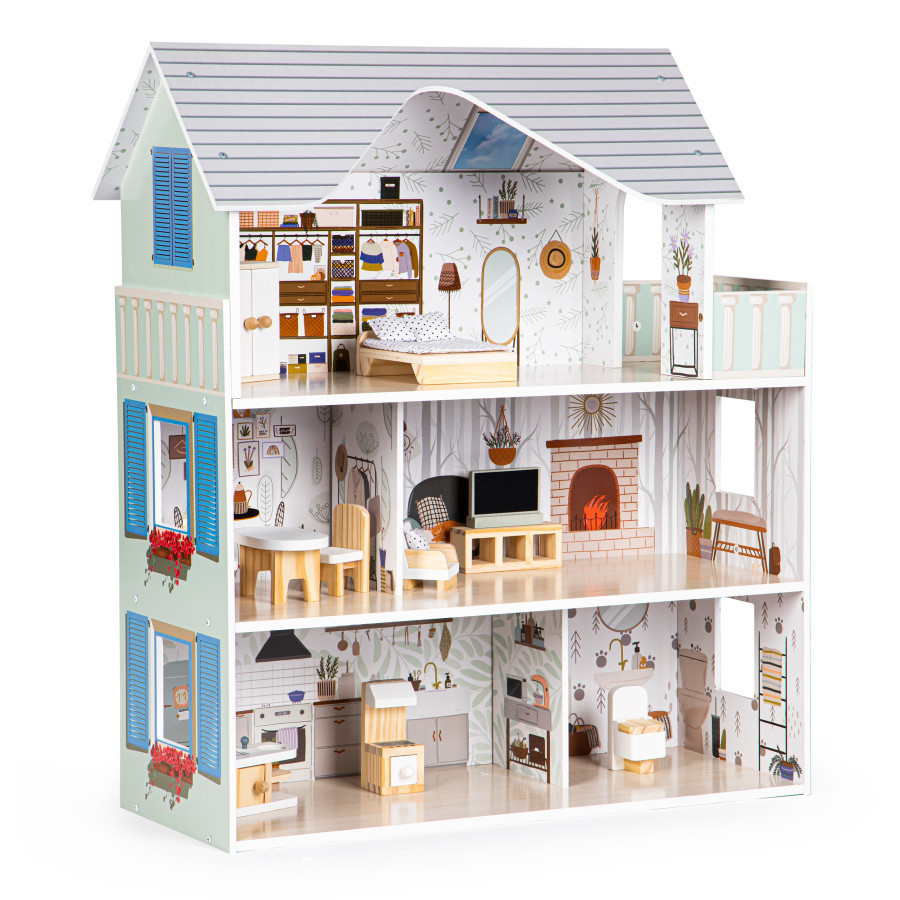 Egy pillanatnyi játék elég ahhoz, hogy gyermeke megszeresse. A teljes ház 3 független szintből áll, összesen 4 szobával. Mindegyik szoba más-más stílusban készült el, a dekoráció és a bútorok az adott szoba jellegéhez és rendeltetéséhez illeszkednek. Azonban semmi sem akadályozza meg gyermekedet abban, hogy lakberendezőt játsszon, és a saját elképzelése szerint alakítsa ki a házat.