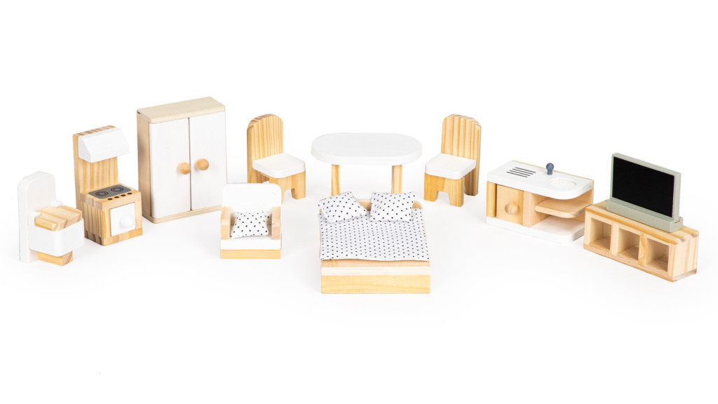 A készlet tartalmaz továbbá egy 10 darab fa bútorból álló készletet és egyéb tárgyakat, például egy porszívót, egy gitárt, egy tükröt és egy kennelt. Minden elem szabadon eltávolítható és átrendezhető mindenféle korlátozás nélkül.