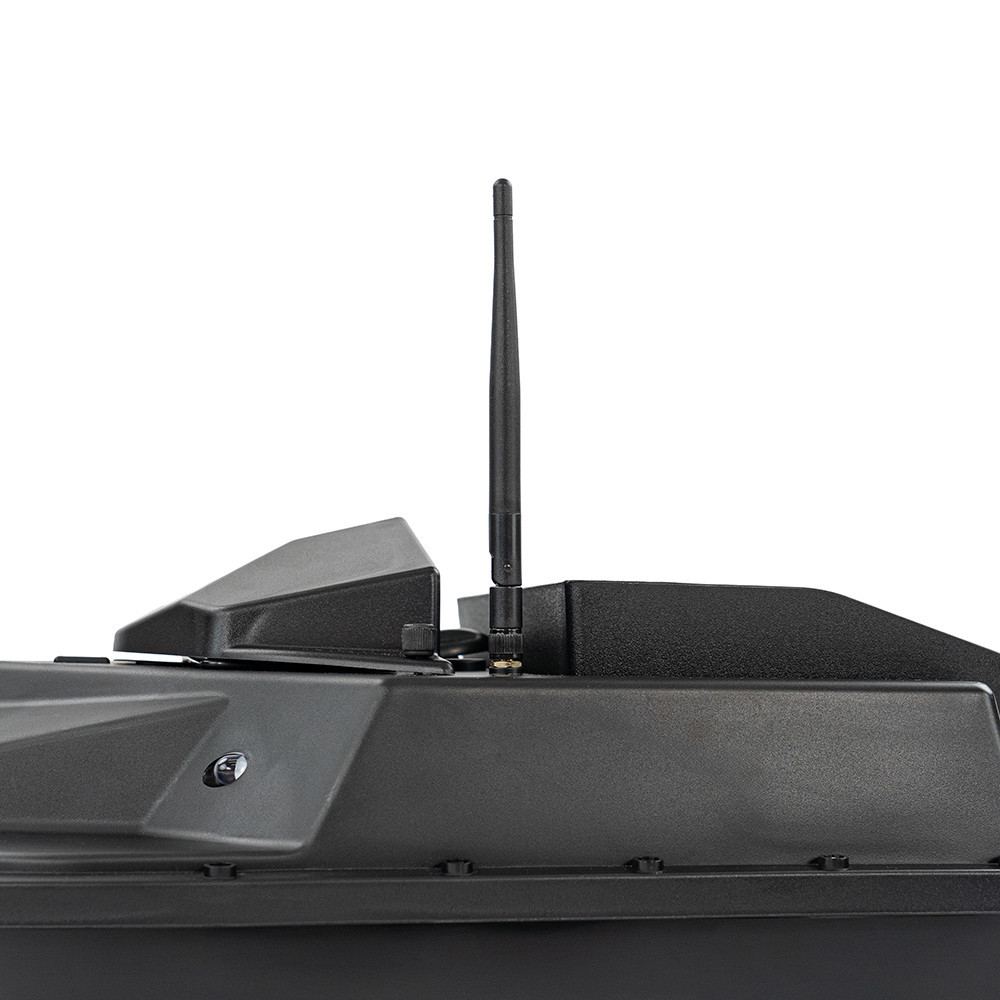 A fekete testű etetőhajó formatervezett kialakítása nemcsak modern megjelenést nyújt, hanem kiválóan ellenáll a fröccsenő víznek és a kisebb hullámzásnak is. A hátsó ürítési mechanizmus egyszerűen kezelhető, így gyorsan és pontosan lehet etetni bármilyen horgászhelyen.