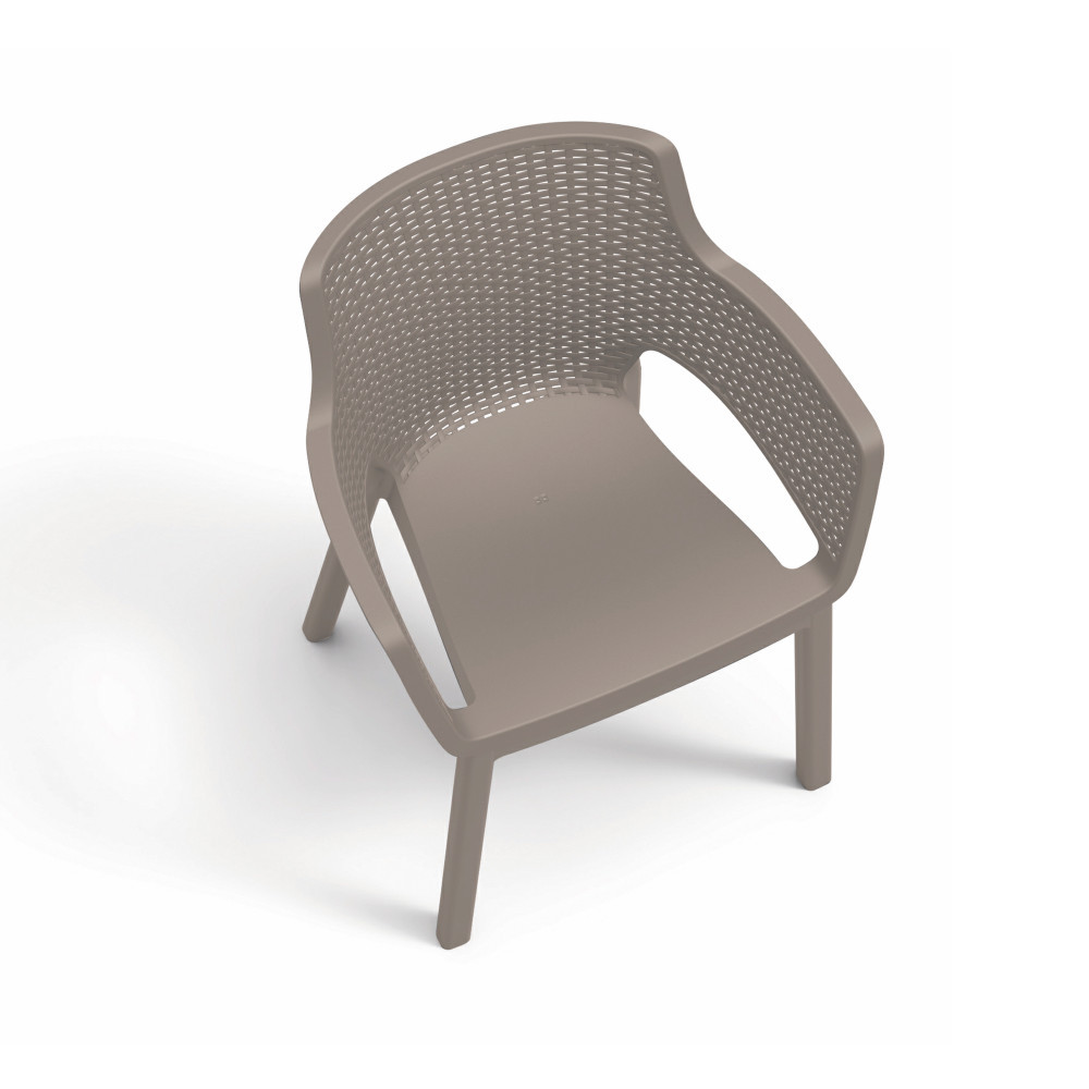 Az Eva egy kivételesen kényelmes szék, korszerű külsővel. A profilozott támla és ülőhely, a puha, kerekített könyöklő vonala kétségtelenül előnyei ennek a terméknek. A sima vesszőfonásos minta korszerű textúrájú, könnyen tisztítható és a székek egymésba helyezhetőek. Ideális bútorok a házba és a kertbe.