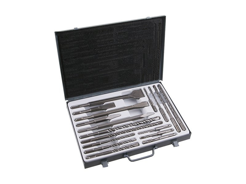 Vésők és fúrók SDS + - 17 darabos készlet, kiváló minőségű kombinált véső- és fúrókészlet SDS-ben való rögzítéssel + elektromos fúrókalapács (kombinálható a 20744-es adapterrel SDS MAX rögzítéssel rendelkező gépeknél), összetétel: 5, 6, 8 x 110mm - 6, 8, 10, 12 x 160 mm - 8, 10 x 210 - 12, 14 x 260 mm, felhasználás: vésők - bontáshoz, betonvágáshoz, falazáshoz, burkoláshoz..., fúrók - ütvefúrás betonban, falazatban, csempében, kőedényben..., csomagolás: tartós bádogdoboz.