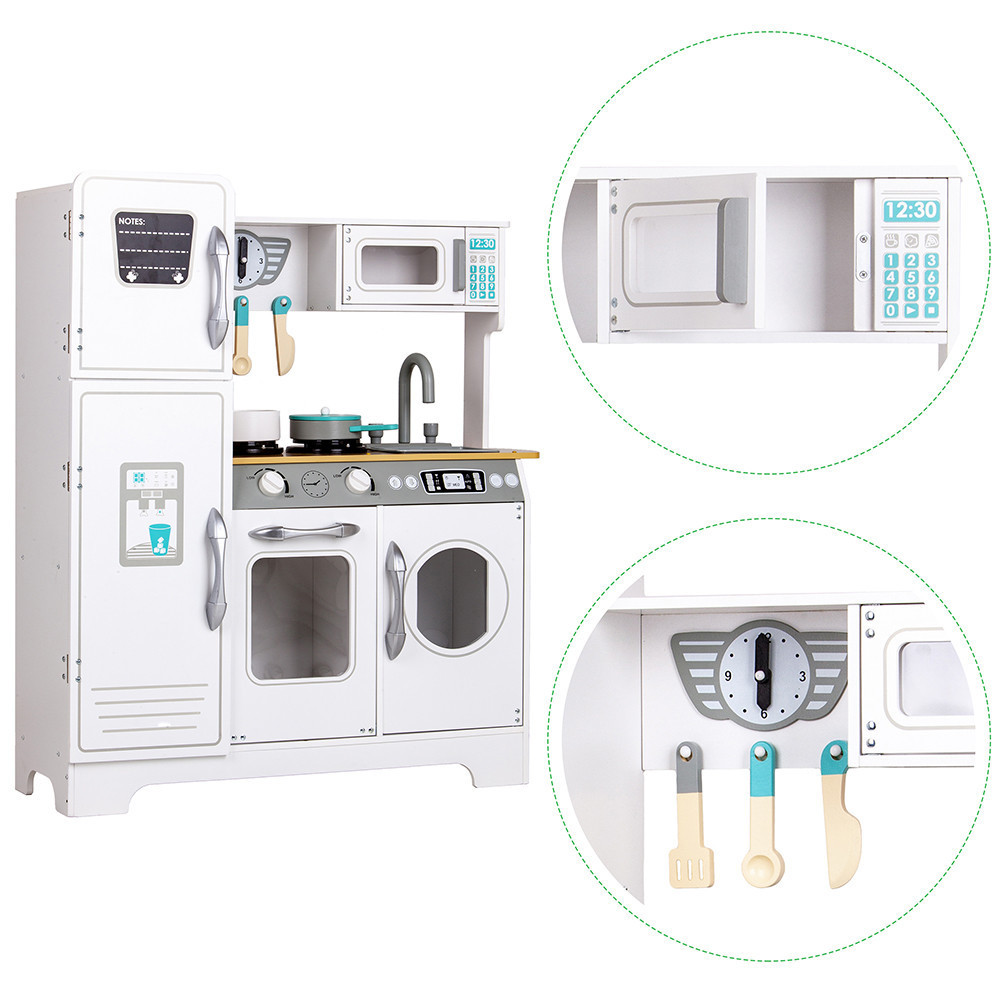 A kis szakács egyszerre süthet, főzhet és melegíthet ételt a mikrohullámú sütőben. Főzés után az összes edényt elmosogathatja a tágas mosogatóbanés az eszközöket visszateheti a helyükre.