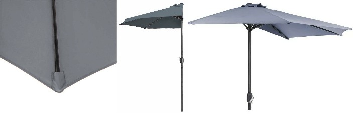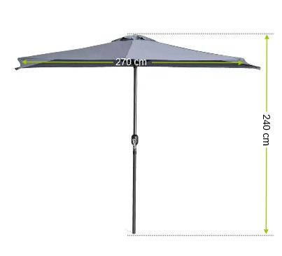 A nagy kerti ernyő oszlopa acélból készül. A napernyő félkör alakú, amely lehetővé teszi a kis terek árnyékolását. Az 5 bordás szerkezettel megerősített félkör alakú ernyő lehetővé teszi a napernyő falhoz helyezését. Az ernyő elkészítéséhez poliésztert használtak. Alacsony vízfelvétel jellemzi. A felhasznált anyagoknak köszönhetően a nagyernyő tartós és könnyen kezelhető, ami jelentősen befolyásolja a használat idejét.