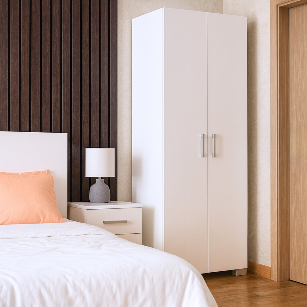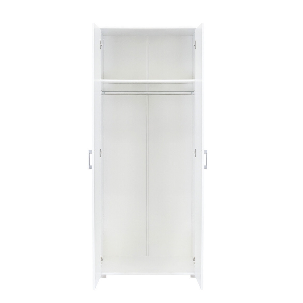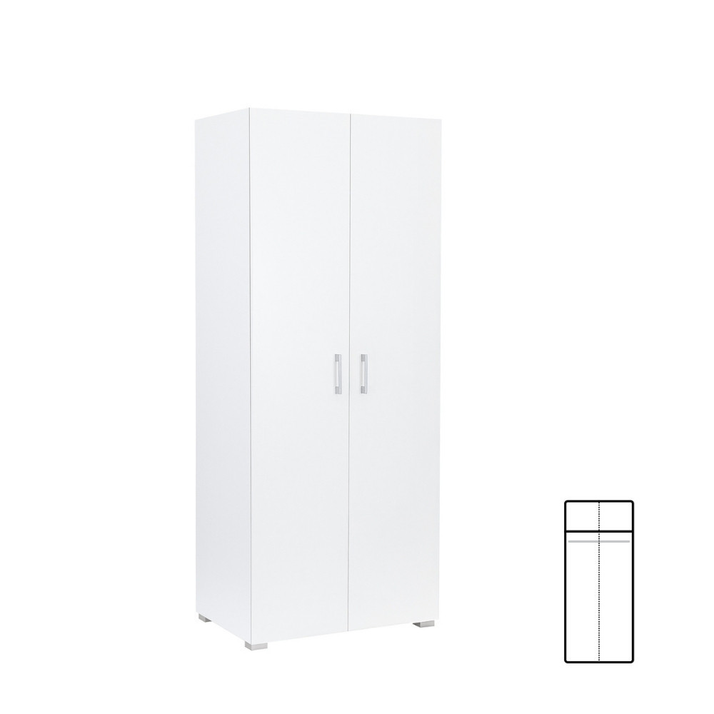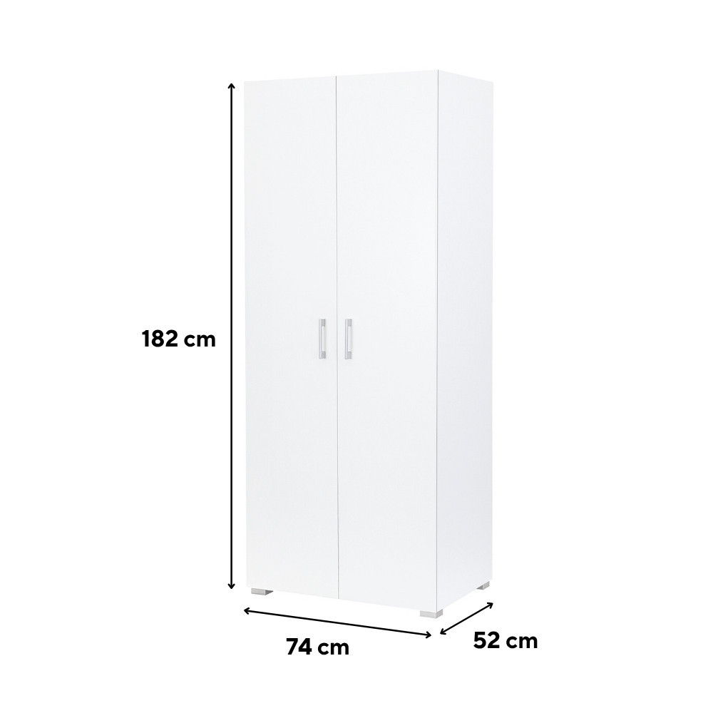 A Family ruhásszekrény ideális választás mindazok számára, akik kis helyen is hatékony tárolási megoldást keresnek. A 74 cm széles és 182 cm magas szekrény kompakt kialakításával és fehér színével harmonikusan illeszkedik bármely hálószobába, vendégszobába vagy előszobába. A kétajtós kivitel mögött egy praktikus akasztórúd és egy felső polc segíti a rendszerezett tárolást – legyen szó ruhákról, kabátokról, dobozokról vagy egyéb kiegészítőkről.