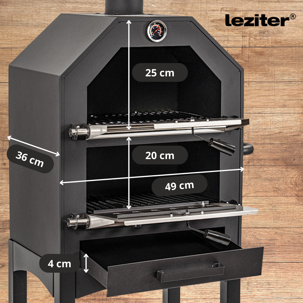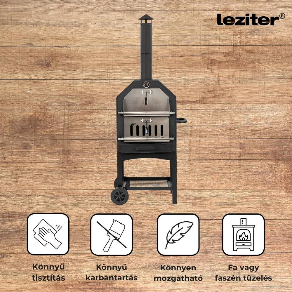 A sütő használata könnyedén elsajátítható, a karbantartás pedig gyors és problémamentes. A kivehető hamutálca megkönnyíti a takarítást, míg a porszórt acélfelület ellenáll a szennyeződéseknek és időjárásnak. A sütés után elegendő egy mozdulat, és a kemence újra készen áll a következő lakomára.