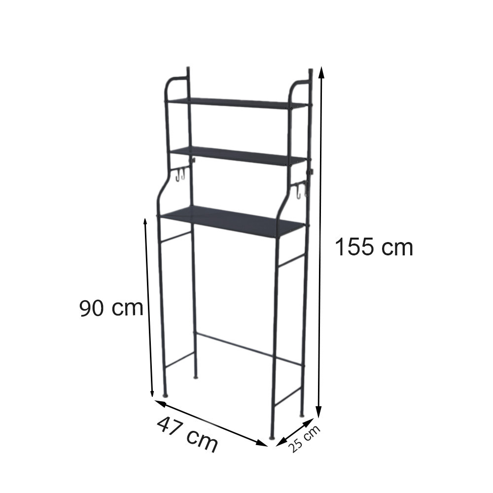 Fürdőszobai polc wc fölé, többszintes, fekete