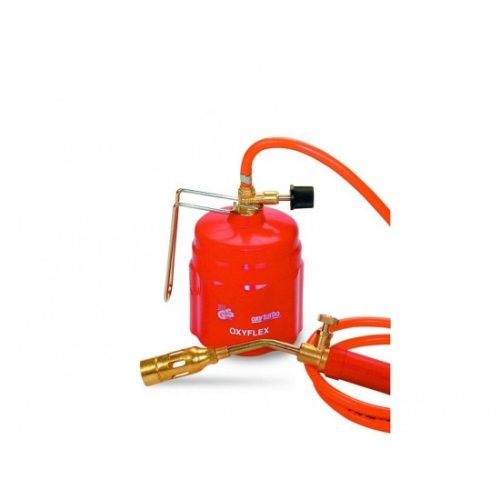 Gázlámpa, tömlős OXYFLEX Oxyturbo méret 22 mm égőfej, 1,5 mm tömlő, műanyagházas, tömlős forrasztólámpa,190 g gázpatronnal haszn