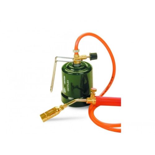 Gázlámpa, tömlős, fémh. OXYFLEX IRON Oxyturbo méret 22 mm égőfej, 1,5 mm tömlő, fémházas, tömlős forrasztólámpa,190 g gázpatronn