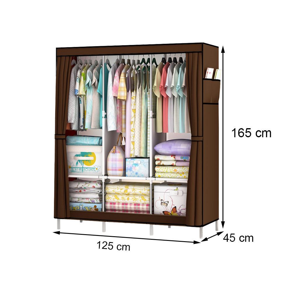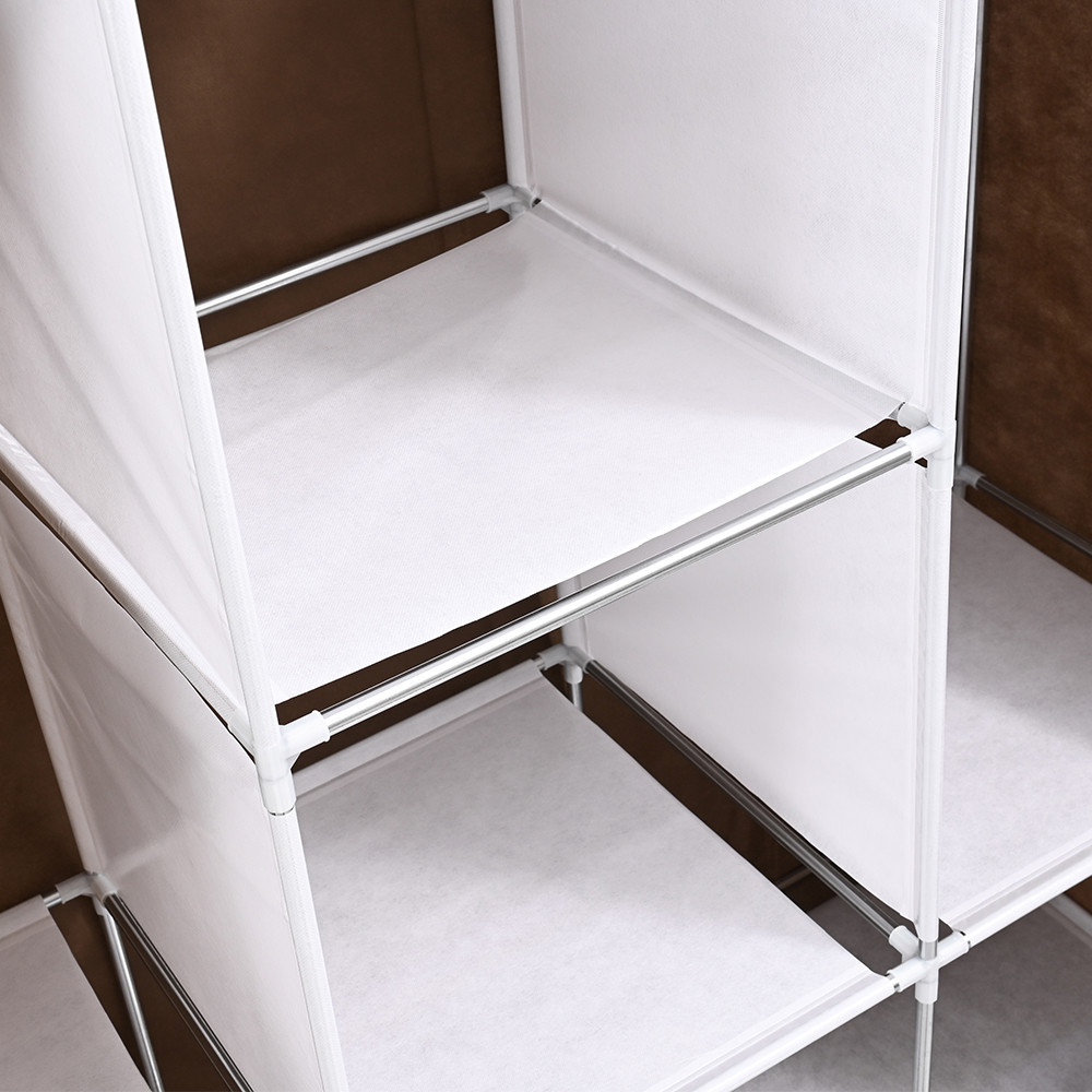 • Anyag: A tartós fémváz és a szövetborítás megóvja a ruhákat a portól. A borításhoz cipzár tartozik, amely lehetővé teszi a szekrény könnyű és zárt állapotban történő használatát, így biztosítva, hogy a ruhák tiszták és védettek maradjanak.