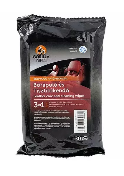 A finom bőr különleges bánásmódot igényel, hogy megtartsa eredeti állapotát. A Gorilla Leather Wipes nedves törlőkendővel könnyedén eltávolíthatja a beivódott szennyeződéseket és a port a bőr és a műanyag felületekről az autójában. A speciális anyagú kendőszövet magába zárja a szennyeződéseket ezáltal tisztítja, puhítja és táplálja. Ragyogóvá teszi autója bőr részeit, meghosszabbítva élettartamát. Használatával hosszú távú védelmet kap a kezelt felület. Csíkmentesen tisztít és ragyogó felületet hagy maga után. A csomagolás formátuma praktikus és helytakarékos, kényelmesen elfér minden kesztyűtartóban vagy az ajtó oldalában.