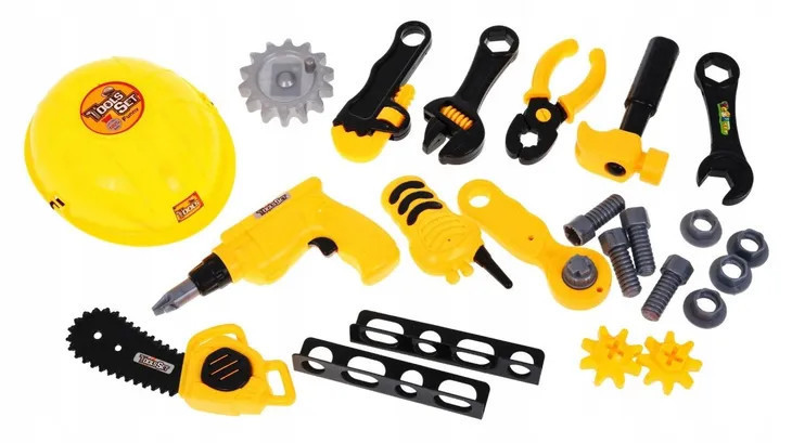 A készlet nem kevesebbet tartalmaz, mint 23 elemet, amelyek úgy néznek ki, mint a valódi szerszámok: