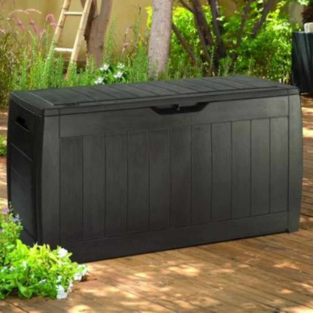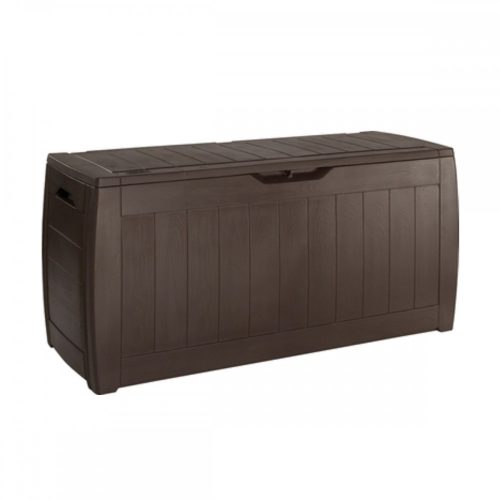 A funkcionális és tágas , 270 liter űrtartalmú kerti tárolót a neves Keter cég gyártotta, amelynek nagy tapasztalata van a műanyagból készült kerti felszerelések létrehozásában. A kerti tároló tökéletes hely a kerti székek, játékok vagy egyéb kerti felszerelések párnáinak tárolására. Noha fa kerti doboznak tűnik , ez csak egy stilisztikai eljárás, amelyet a gyártási folyamat során hajtanak végre. A Keter Hollywood Box teljes egészében erős és tartós műanyagból készül. Ennek köszönhetően vízálló, ellenáll az UV sugárzásnak és környezetbarát is. A Keter termékek előállításához szükséges anyagok nagy részét újrahasznosításból nyerik.