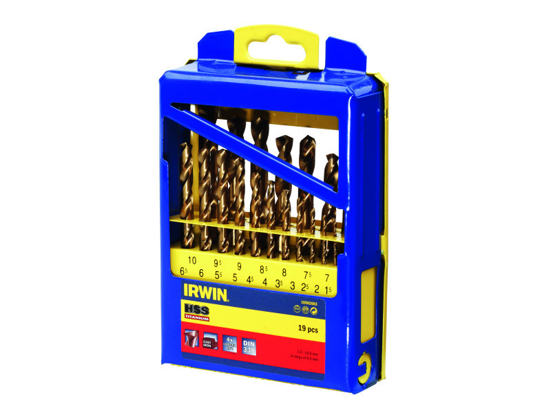 IRWIN Csigafúró készlet 19 részes HSS TiN hengeres (1-10 mm)