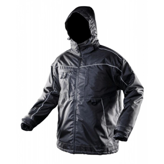 NEO téli munkaruha dzseki (kat. sz. 81-570-S) vízlepergető és szélálló. Nagyon meleg, de az alkalmazott anyagoknak köszönhetően könnyű és strapabíró. Nem akadályozza vizelője mozgását. Levehető szabályozható csuklyával és magas, a nyakat védő állógallérral. Az ujjak szabályozható rugalmas kézelőkkel, valamint második, a szél és az eső ellen védő belső mandzsettával. A dzseki alsó szegélyvarrásába integrált, szabályozható rugalmas derékkal segíti a meleg megőrzését, maximálisan komfortossá téve a viseletét. Sok hasznos zsebbel, külön, a korábbiakhoz képest nagyobb zsebbel az okostelefonnak. A belső zsebnek és a többfunkciós akasztónak köszönhetően a szükséges dolgokat viselője mindig magánál tarthatja. A fényvisszaverő elemek biztosítják viselője láthatóságát. A termék EN ISO 13688:2013 szabvány szerinti kivitelezése és az európai CE tanúsítványa minőségének garanciája. A NEO márka a professzionális igényeket is kielégíti.